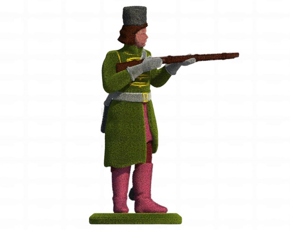 Топиари Гусар - символ отваги и патриотизма. Этот искусно созданный образ переносит нас во времена славных побед и героических сражений. В его силуэте читается решимость, отвага и преданность Отечеству. Топиари станет достойным украшением любого парка или сквера, напоминая о величии русской истории и подвигах предков.