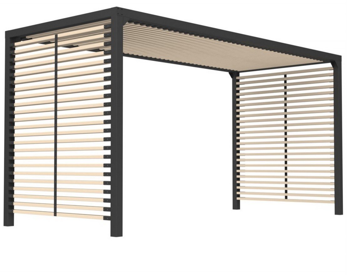 - Деревянные элементы: доска из лиственницы 1 сорта. Поверхность покрывается специальным паропроницаемым натуральным маслом Luna. Масло Luna защищает дерево от атмосферного воздействия, растрескивания, выгорания, поражения грибком, синевой и плесенью.